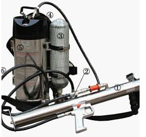 配置總成:噴射器,儲氣瓶,瓶頭閥,300/27/6巴雙極減壓閥,背架,壓力表,安全閥,噴射器進水管,噴射器進氣管,水箱,水箱進氣管